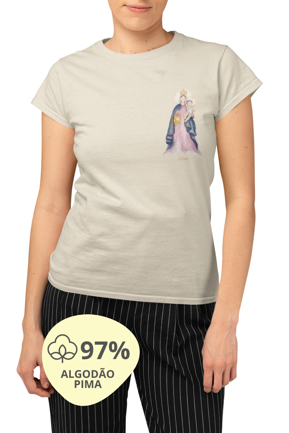 Conecte-se à luz divina e à proteção maternal com esta camiseta exclusiva em Algodão Pima, que traz uma delicada ilustração aquarelada de Nossa Senhora da Luz. Uma peça que une fé, conforto e arte, perfeita para momentos especiais ou para iluminar o dia a dia.