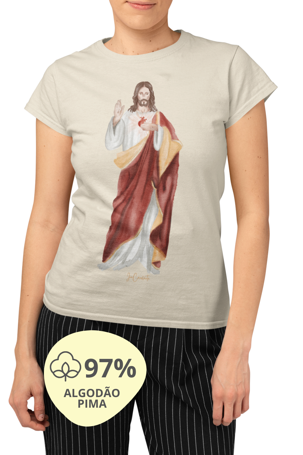 Leve a presença e a mensagem do amor incondicional de Jesus Cristo consigo com esta camiseta exclusiva. Um símbolo de fé e devoção para momentos especiais ou para o dia a dia.