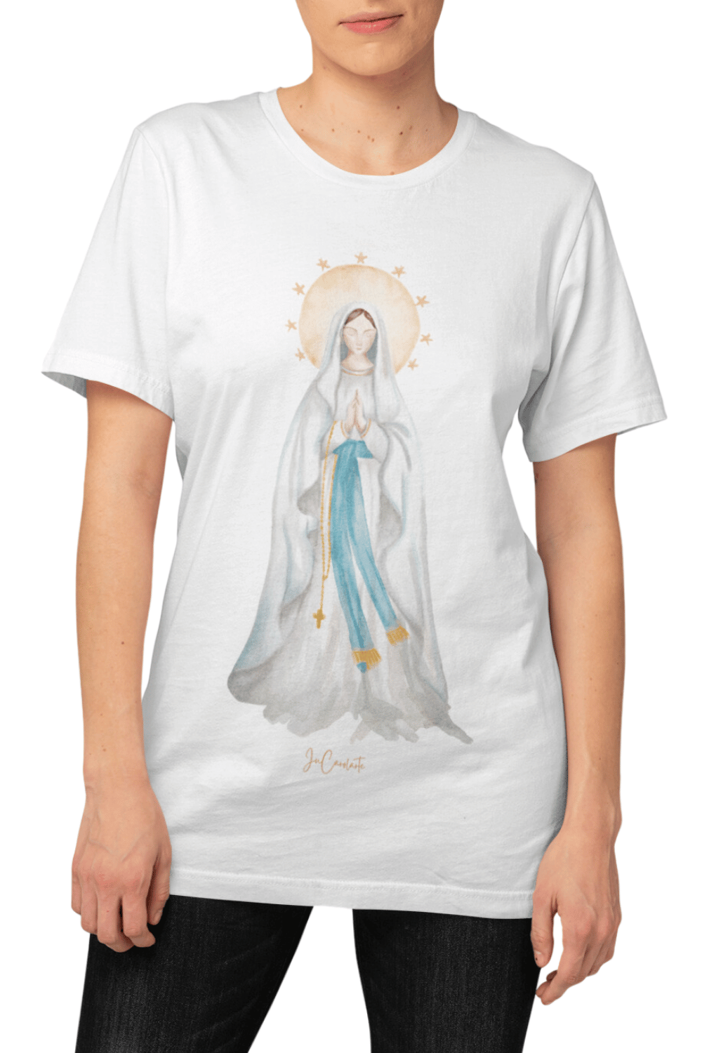 Camiseta Nossa Senhora de Lourdes: Um símbolo de fé e cura, com design exclusivo inspirado na serenidade e devoção mariana.
