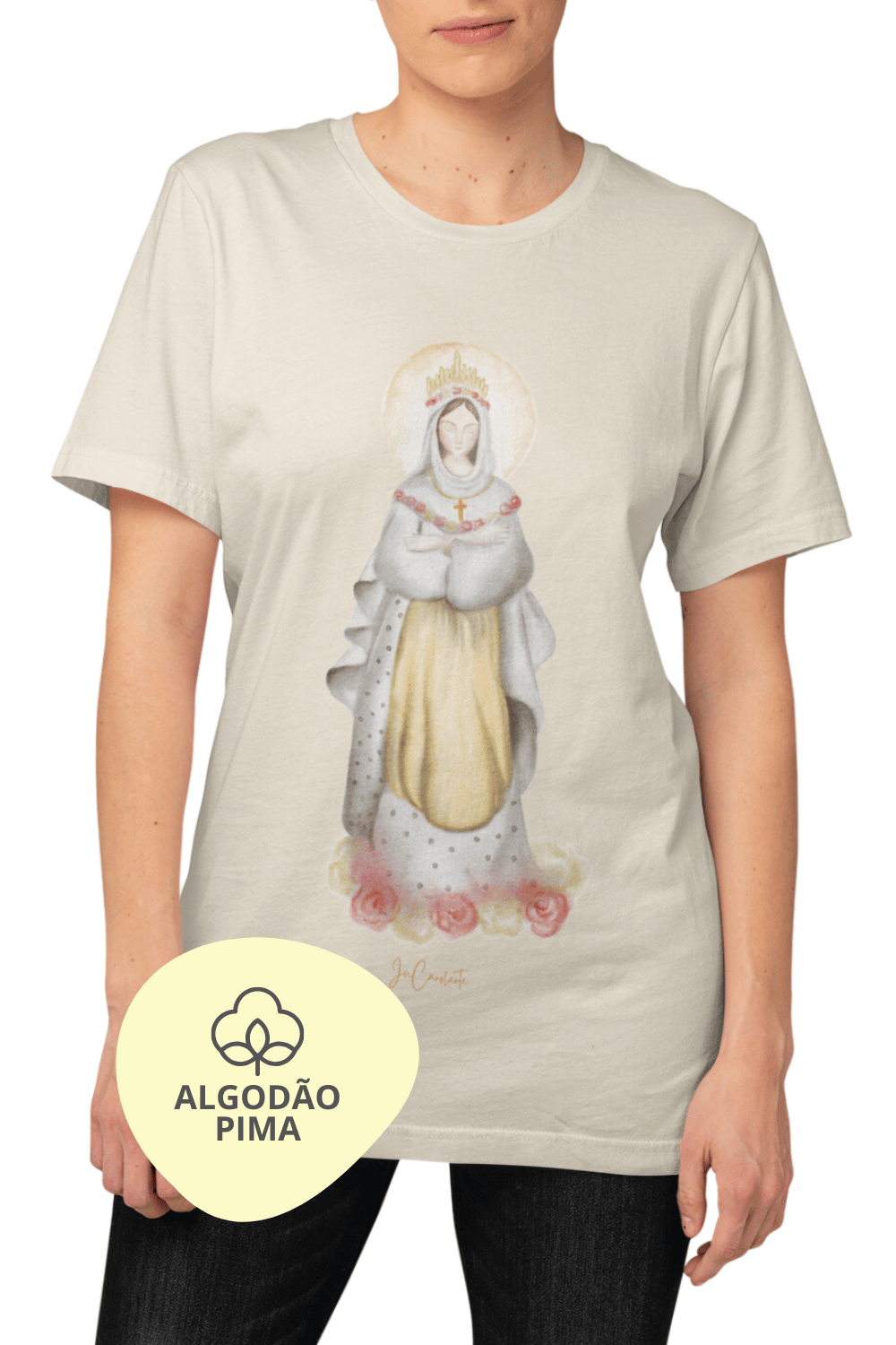 Adorne sua fé com sofisticação e beleza com nossa camiseta de Algodão Pima, apresentando a ilustração exclusiva e aquarelada de Nossa Senhora de La Salette. Este design único foi cuidadosamente criado para trazer à tona a serenidade e a espiritualidade de Maria, oferecendo uma peça que combina devoção com elegância.